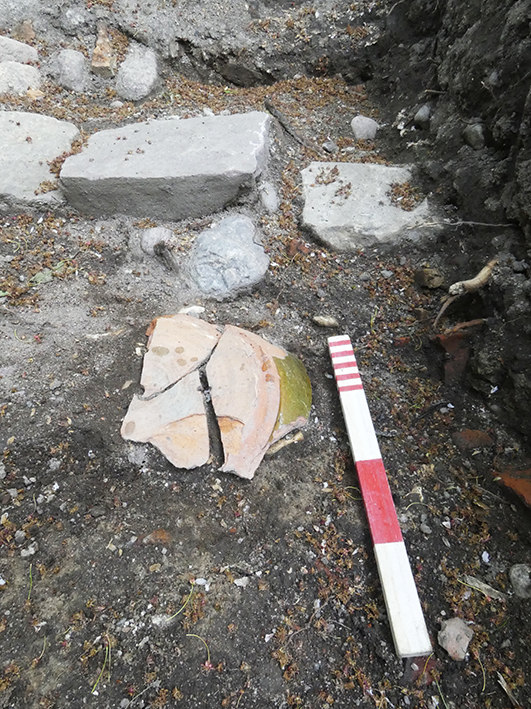 I anslutning till byggnaderna hittades bland annat en större mängd hushållskeramik, fönsterglas och djurben. En del av keramiken har troligen utgjort blom- och planteringskrukor, då flera kärl verkar ha dräneringshål i botten.