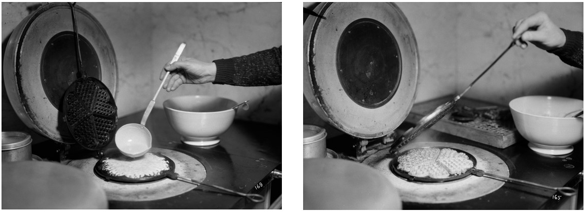 Gräddning av våfflor, Fackskolan för huslig ekonomi, Uppsala februari 1932. Foto: Gunnar Sundgren/Upplandsmuseet